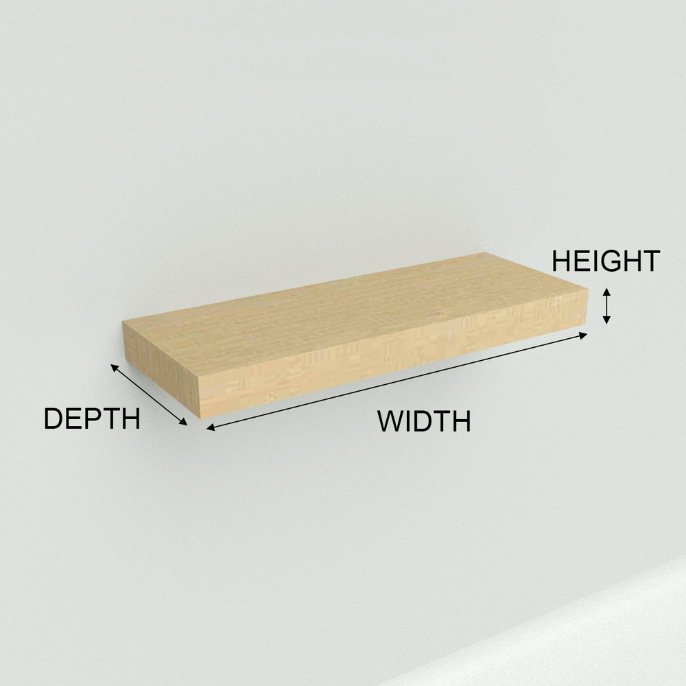 If you have unfinished sides, we recommend you order the shelf an extra 1” long to scribe to the side wall or cabinets. Always order your shelf an extra 1” deep to scribe to the back wall.
